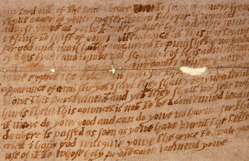 My lord, out of the love I beare to some of youere frends, I have a care of youre preservacion, therefore I would aduyse you as you tender your life to devise some excuse to shift youer attendance at this parliament, for God and man hath concurred to punishe the wickedness of this tyme, and thinke not slightly of this advertisement, but retire yourself into your country, where you may expect the event in safety, for though there be no apparance of anni stir, yet I saye they shall receive a terrible blow this parliament and yet they shall not seie who hurts them this cowncel is not to be contemned because it may do yowe good and can do yowe no harme for the dangere is passed as soon as yowe have burnt the letter and i hope God will give yowe the grace to mak good use of it to whose holy proteccion i comend yowe.